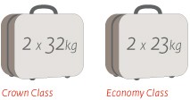 Gebühren für zusätzliches Gepäckstück bis maximal 23 KG in Economy und Crown Class.