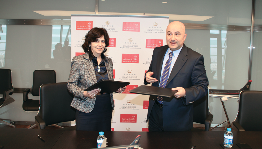 Royal Jordanian and King Abdullah II Center for Excellence signed a cooperation agreement under which Royal Jordanian grants preferential benefits to the award-winning institutions of the King Abdullah II Award for Excellence for the private sector.