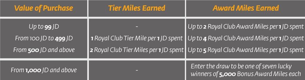 Make every purchase count with Royal Jordanian’s Royal Club program!