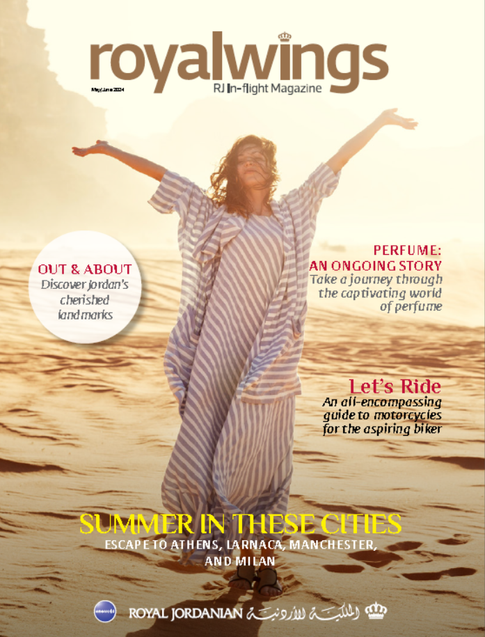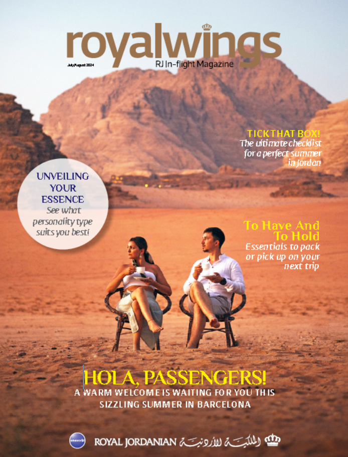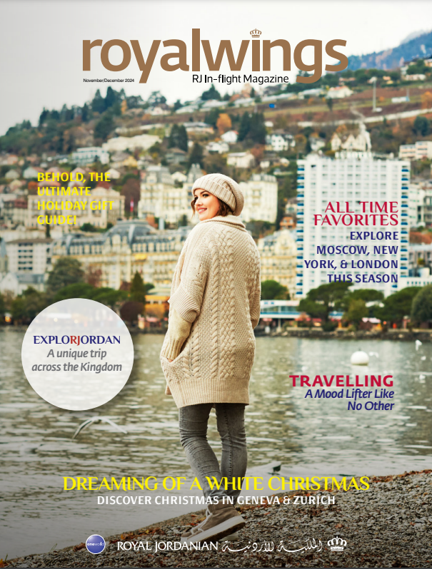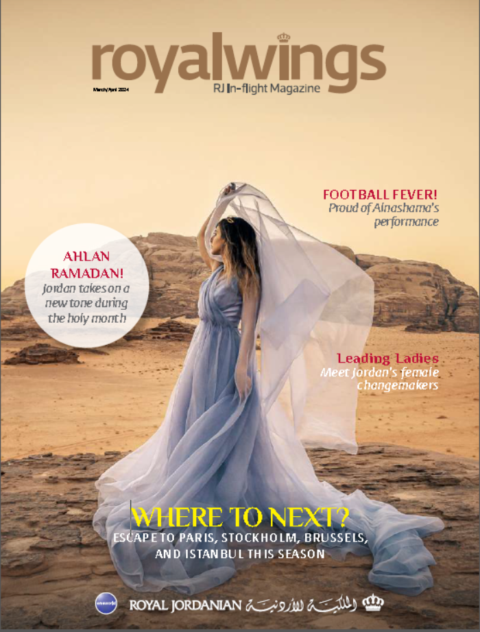Royal Jordanian’s complimentary in-flight magazine Royal Wings, not only offers passengers an interesting mix of topical international features, it also includes articles on Jordan’s fascinating sites and culture, people profiles, and a comprehensive guide to the airline’s routes and facilities.